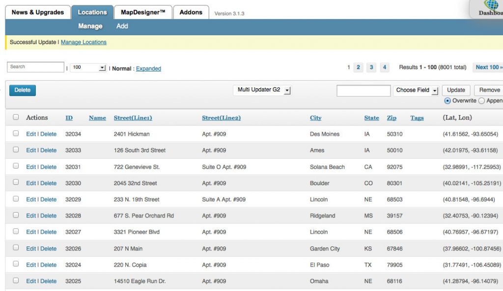 Perform bulk updates on more than just the Tags of several locations at once from your location management interface, instead of the slower process of updating individually. Works with all Store Locator fields, default and custom. Saves a tremendous amount of time for managing many locations
