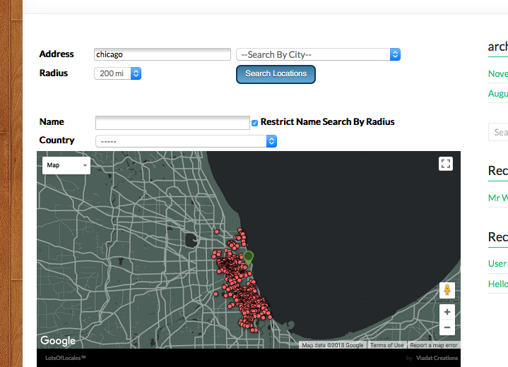 3. Search By Name: Display search results whose location name match the text submitted to the name field that displays when checking this option