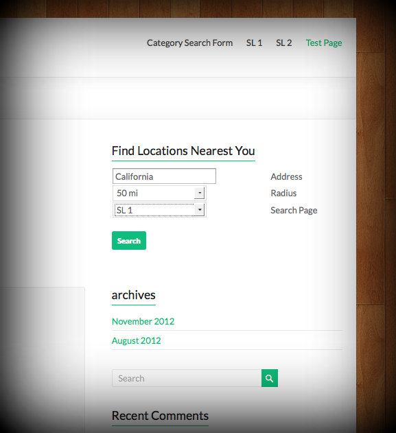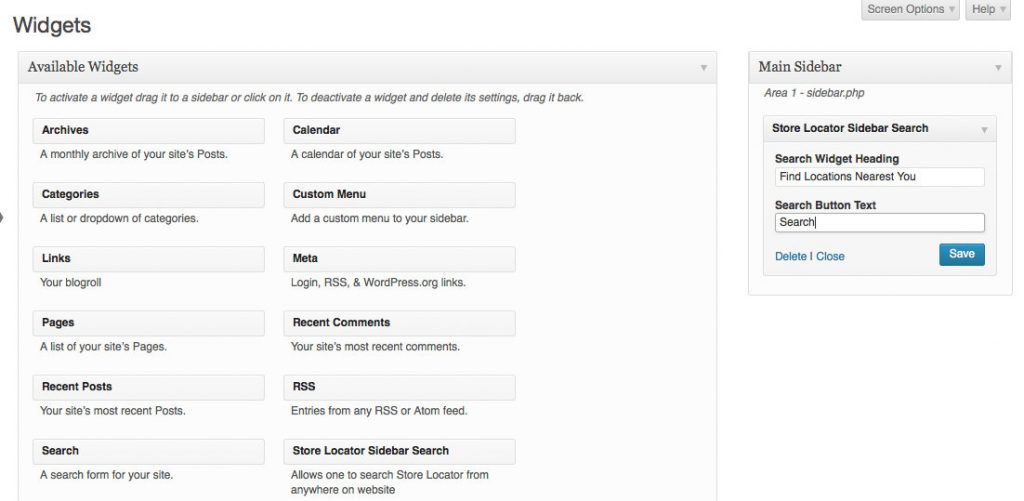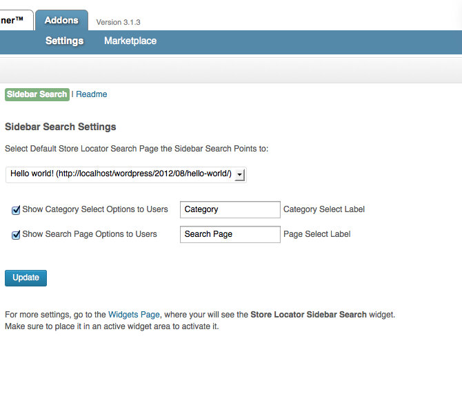 Adds a sidebar search widget that allows your visitors to search your Store Locator map(s) from any page our your website. Options for searching by category and choosing search page included (if multiple Store Locator maps have been created).