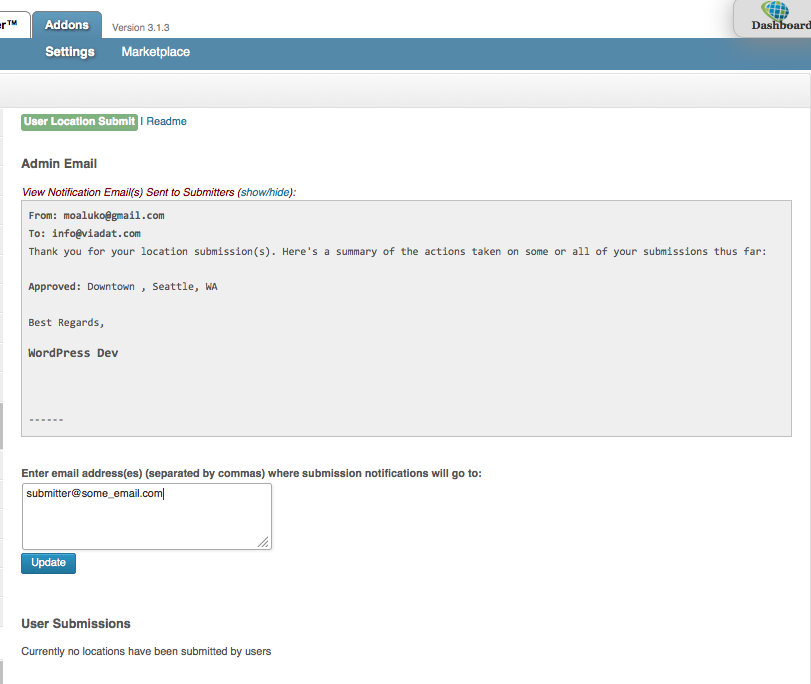 Allows your users/visitors to suggest locations by submitting to this front-end user submission form, where admins can then review and approve or reject the suggested locations in the backend admin area.