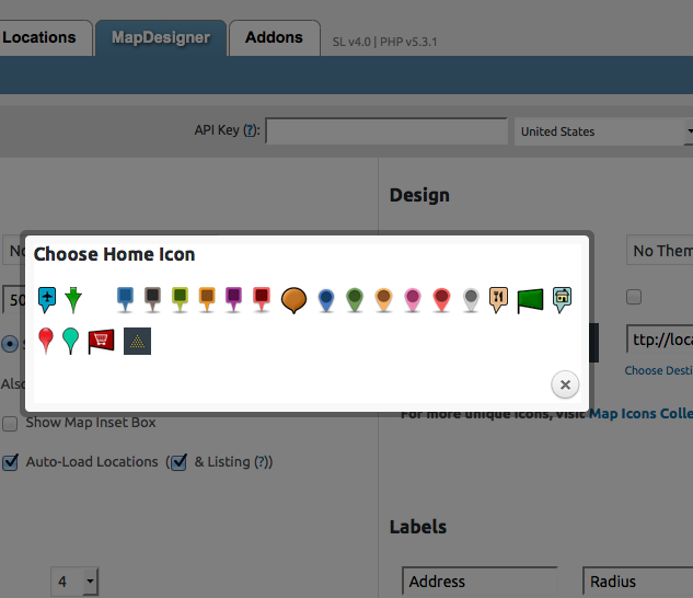 Use custom CSS stylesheets and select from (or add) your own map icons to customize appearance to website's branding & colors